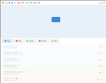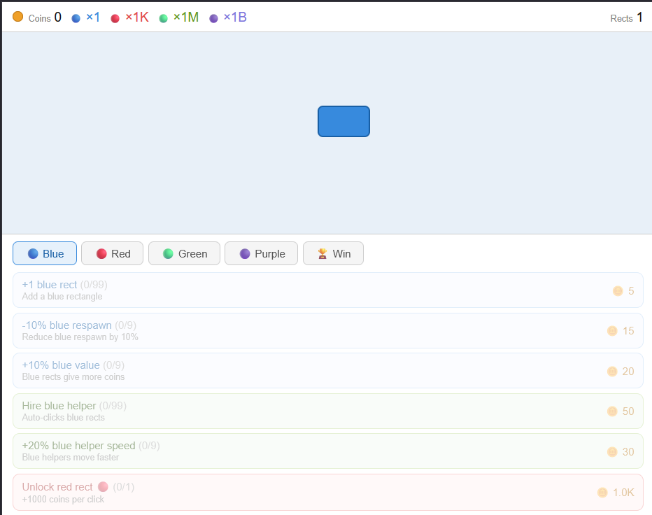 Click the rectangles to earn coins and buy upgrades.